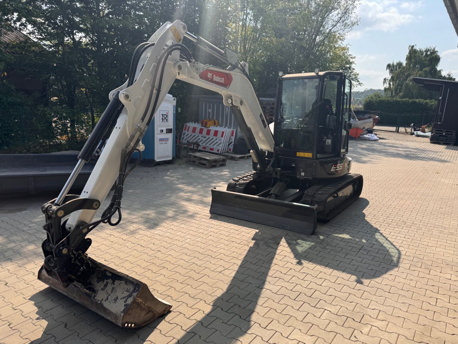 TOPS/ROPS cab with heater 1,960 m dozer blade 40 m rubber tracks Double-flange track rollers 2-speed drive with auto-shift function 5-inch display Controls: Hydraulic control lever Machine IQ (telematics) Upperstructure tie-down points Selectable auxiliary hydraulic flow Battery disconnect switch Dozer blade float position Pre-installed hydraulic clamp Control console lock Cup holder Toolbox Engine and hydraulic monitoring with shutdown Foldable and ergonomic pedals